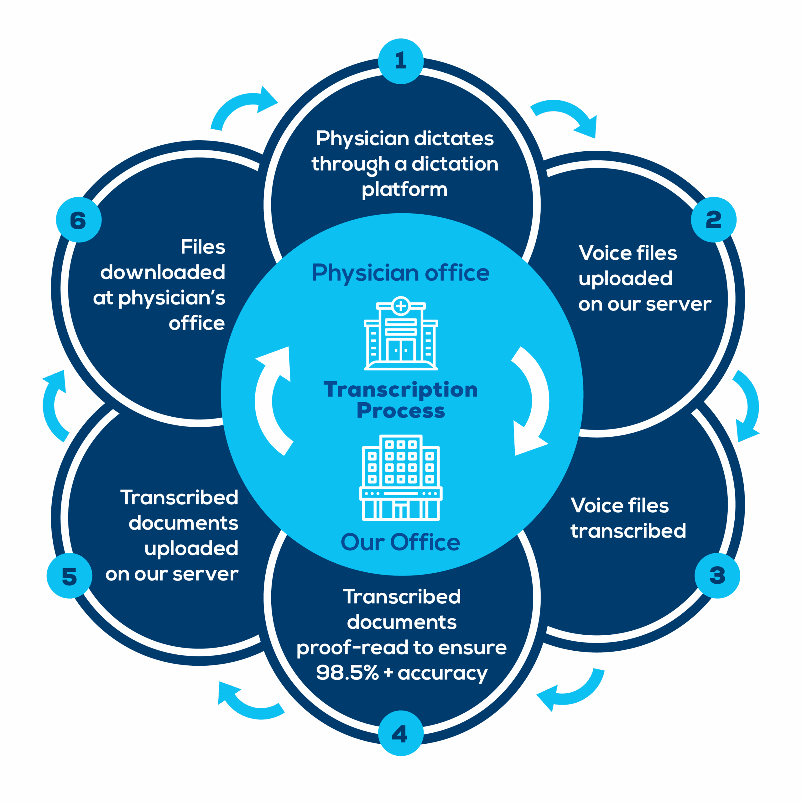 We convert physician voice notes into accurate, structured, and formatted medical records. Our transcriptionists are trained in various specialties and adhere to stringent quality checks to ensure HIPAA-compliant, error-free documentation.
